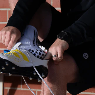 デザイン:ソックスの前面には象徴的なラグビーブリックスクラウンのロゴが描かれ、背面には星があしらわれて、目標を追い続けることを思い出させてくれます。